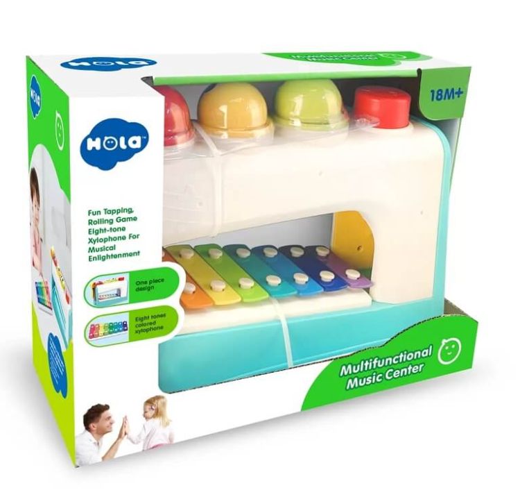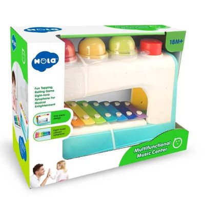 Centru muzical multifunctional cu xilfon bile si ciocan. Xilofonul are 8 tonuri si poate fi scos din centrul muzical pentru a invata notele si a canta mai usor la el. Jocul de rulare al mingiilor permite bebelusilor sa-si dezvolte abilitatile de urmarire vizuala. Jucaria ajuta la dezvoltarea gandirii logice a dexteritatii si a abilitatilor motorii.Specificatii