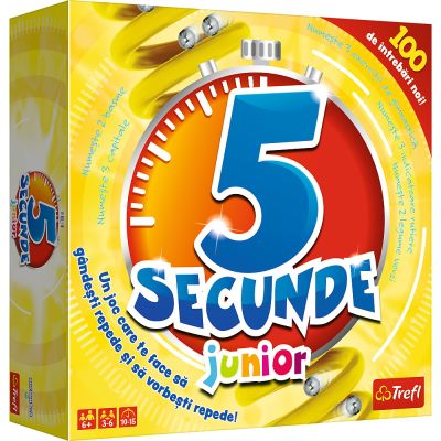 Puteti cu siguranta sa numiti trei arome diferite de gem, dar puteti face asta contra cronometru? Atentie! Aveti doar 5 secunde la dispozitie, iar ceilalti jucatori abia asteapta sa gresiti! Timpul nu e de partea voastra, asa ca spuneti orice va trece prin cap! Uneori dati raspunsuri ciudate sau amuzante cat aluneca bilutele pana la baza tubului pentru masurarea timpului. 5 secunde Junior este un joc pentru copii cu varste cuprinse intre 6 si 9 ani.