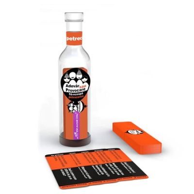 Roteste sticla in mijlocul cercului. Odata ce sticla se opreste jucatorul care a rotit sticla trage o carte din partea de sus a teancului si pune intreabarea jucatorului la care este indreptat varful sticlei Adevar sau Provocare Cel mai bun mod de a afla mai multe despre prietenii si familia intr-un mod jucaus plin de rasete. Aceasta versiune este varianta revizuita a jocului clasic pe care toti l iubim sunt reglementate intrebarilor pentru a asigura ca acestea sunt sigure distractive si permite jocului sa fie accesibil unui spectru mai larg de public. Varsta recomandata 12 ani Durata 20 - 60 minute Numar de jucatori 3-10 persoaneSpecificatii