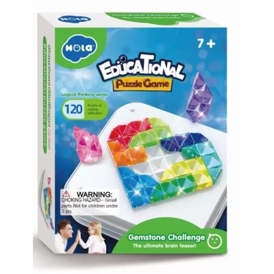 Cu zece pietre pretioase colorate si 120 de puzzle-uri cu diferite niveluri de dificultate acest joc ii va distra pe toti membrii familiei tale. In plus este chiar ideal pentru joaca parinte-copil Tot ce trebuie sa faceti este sa alegeti o carte de provocare si aranjati pietrele pretioase potrivite pe inima sau pe tabla cu diamante apoi utilizati piesele ramase pentru a umple toate golurile. Deci da-i drumul lasa-l pe micutul tau sa-si arate abilitatile cu aceasta provocare interesanta cu pietre pretioase.