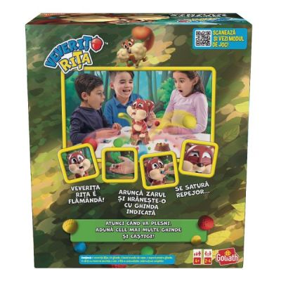 Iarna se apropie a venit timpul ca veveritele sa isi stranga alunele. Dati cu zarul apoi hraniti-o pe Rita cu aluna de culoarea potrivita. Fiti atenti la pleoapele ei - cand se inchid e gata sa plesneasca Fiti primul care aduna toate alunele ce au cazut din copacul veveritei Ri a si completati-va rezerva secreta pentru a castiga.Specificatii