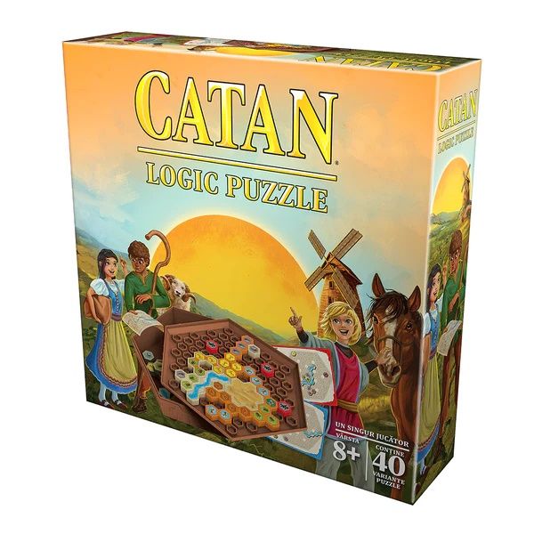 jucatori 1 minute 40 Variante Puzzle Limba Romana Sunteti un explorator indraznet pasionat de unirea insulei Catan prin intermediul comertului. Descoperiti noi cai spre prosperitate in timp ce conectati minele fermele si atelierele de cherestea cu asezarile si orasele. Planificati rute comerciale care se intind prin salbaticie evitati bandele de talhari si furnizati bunuri regiunilor indepartate ale insulei. O aventura care se desfasoara pe parcursul a 5 capitole 40 de variante puzzle si 4 niveluri de dificultate crescande CATAN Logic Puzzle va atrage copiii si adultii deopotriva cu o multime de provocari logice distractive. Inconjurati de atmosfera unui joc de societate devenit clasic jucatorii se pot bucura de o noua serie de provocari in mult iubita lume Catan Continut 1 cutie de depozitare cu plansa de joc integrata pe capac 40 de carti Puzzle 10 piese pentru Rute comerciale 5 piese Hot 5 piese Cavaler 5 piese Asezari 5 piese Orase 2 piese Rau 1 piesa Desert InstructiuniSpecificatii
