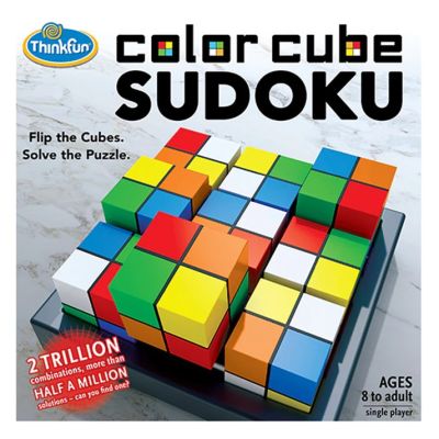 Thinkfun - Color Cube Sudoku este un joc de inteligenta in care trebuie sa intorci si sa rearanjeazi toate cele 9 Cuburi Colorate pe tabla de 3 x 3 pana ce fiecare culoare apare o singura data pe fiecare rand si coloana. Va fi nevoie de mai multe rasuciri pentru a rezolva acest briliant puzzle Sudoku. Odata ce ai inteles metoda traditionala Sudoku savureaza o adevarata provocare incercand Provocarile Bonus Exista peste 2 trilioane de moduri diferite de a pozitiona cele 9 cuburi din toate aceste posibilitati doar 665. 856 vor produce un puzzle rezolvat. Contine Varsta recomandata 8 ani Durata 15 minute Nr. jucator 1 jucator. 9 cuburi colorate 1 tablaSpecificatii