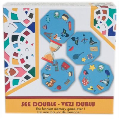 Jocul vezi dublu contine instructiuni 57 carti octogonale cu cate 8 simboluri pe carte si o clepsidra care masoara 2 minute. Exista 57 simboluri diferite iar 2 carti pot avea in comun un singur simbol. Jocul se poate juca in 2-8 persoane si se adreseaza persoanelor in varsta de peste 5 ani.Specificatii