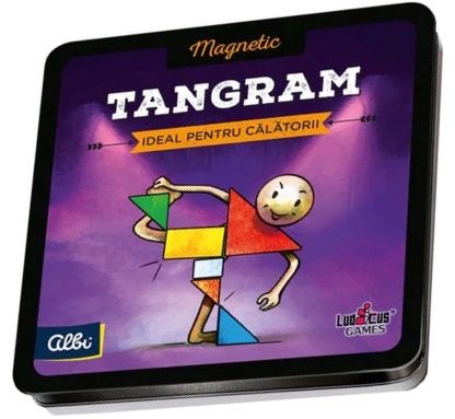 Hai si pune-ti mintea la contributie cu acest joc solo de logica. Demonstraza-ti ca esti capabil sa obtii formele din provocari combinand cele 7 piese. Tangram Magnetic este un joc care stimuleaza atentia memoria dar si imaginatia acum cu un design revizuit si atractiv. Reguli simple pentru jocuri portabile in cutii metalice. Continut 7 piese magnetice 1 caiet cu sarcini regulament in limba romana.Specificatii