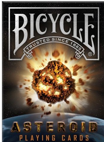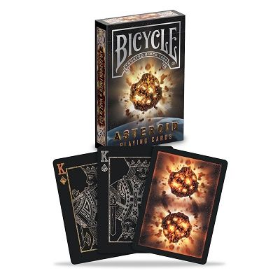 Cartile de joc Bicycle Asteroid reprezinta spectacolul corpurilor ceresti in continua miscare in spatiul cosmic aplicate pe fundalul cartilor de joc. Pe versoul cartilor de joc veti vedea un asteroid care pare ca se dezintegreaza. Cutia este deosebit de eleganta cu o stralucire solara. Classic Air-Cushion Finish pentru amestecare usoara si performanta optima. Dimensiuni 88 x 63 mm. Imprimate pe carton premium marca Bicycle si fabricate in SUA. Pot reprezenta un cadou deosebitSpecificatii