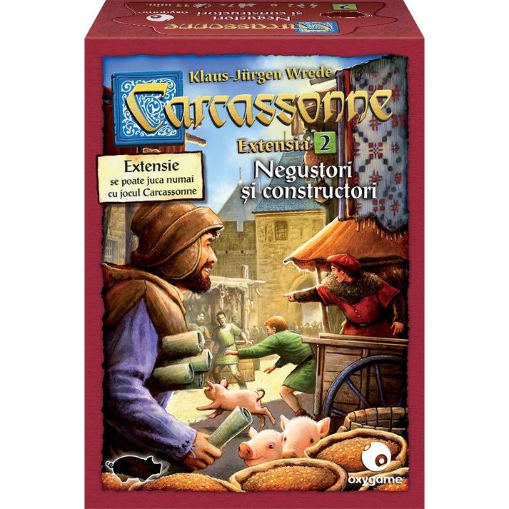 Negustori si constructori este extensia cea mai populara a jocului de baza Carcassonne continand 24 de cartonase adaugand noi functii si deschizand mai multe modalitati de a-ti depasi adversarul. Cu noul adept al constructorilor veti putea accelera constructiile prin plasare unui alt cartonas imediat dupa cartonasul de teren la un drum sau oras pe care constructorul tau il ocupa. In plus Pionii de porc si Tokenul bunurilor va ofera mai multe posibilitati de a puncta. Porcul sporeste valoarea oricaror fermieri pe care ii ai pe acelasi pozitii in timp ce iti completezi orasul cu tokenuri de bunuri. Jucatorul cu cele mai multe puncte bonus acumulate puncteaza la finalul jocului. Este necesar jocul de baza pentru aceasta extensie Durata 1-60 minute Nr. jucatori 2-6 jucatori Varsta recomandata 7 aniSpecificatii