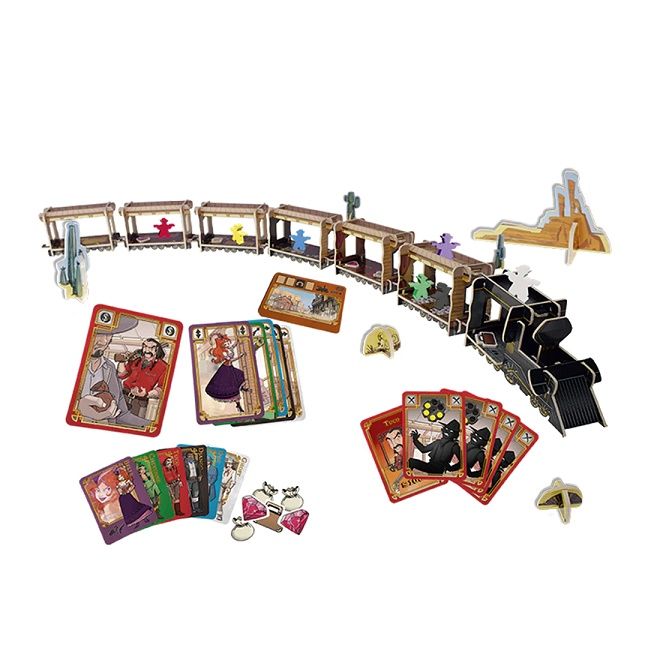 jucatori 2-6 minute 30-40 Limba Romana Deveniti cel mai bun pistolar Veti fi insa si cel mai bogat bandit din Vestul Salbatic 11 iulie 1899 10 A. M. Trenul Union Pacific Express a plecat din Folsom New Mexico cu 47 de pasageri la bord. Dupa cateva minute sunete de pasi grabiti se aud venind de deasupra trenului urmate de impuscaturi. Banditi inarmati jefuiesc fara mila cetatenii cinstiti luandu-le portofelele si bijuteriile Vor reusi ei sa isi pastreze mintea limpede si sa nu incaseze gloante Vor reusi ei sa fure banii de salarii ai companiei Nice Valley Coal depozitati in cutiile de valori atent pazite de ofiterul federal Samuel Ford Doar unul dintre banditi va reusi sa isi atinga scopul devenind cel mai bogat raufacator din banda. Continut 132 de carti 1 locomotiva se asambleaza 6 vagoane se asambleaza 10 elemente de teren 26 de jetoane 7 piese bandit 1 RegulamentSpecificatii
