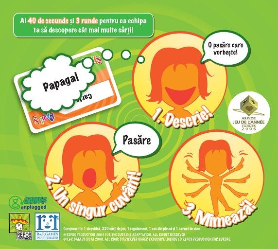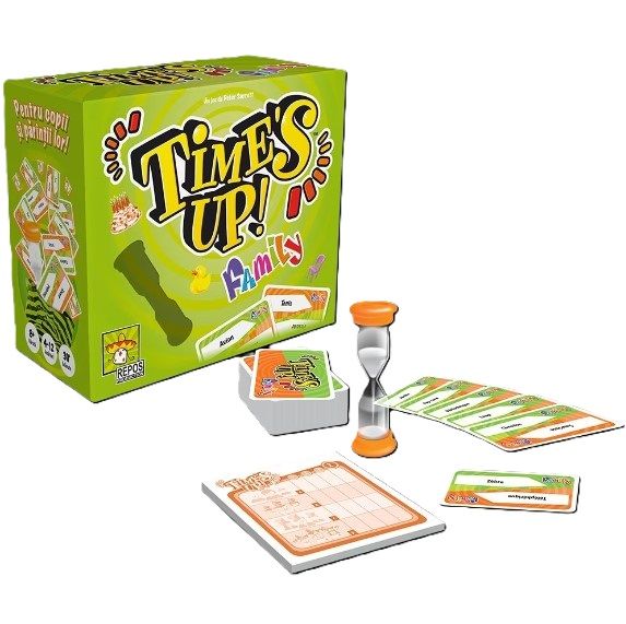 Time s Up Family este un joc de petrecere pentru echipe de cate 2 sau mai multi jucatori in care se trag carti si trebuie sa se ghiceasca cuvinte si fraze cat mai multe in 30 de secunde. Cu cat rundele trec se pot oferi din ce in ce mai putine indicii. Time s Up Family este comparat cu popularul joc mima. Durata joc 30 de minute.Specificatii