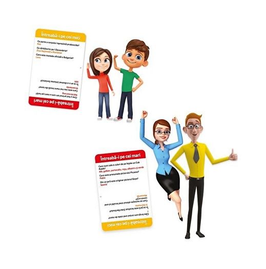 Cel mai distractiv joc de cunostinte generale pentru copii si parinti Cu doua categorii de intrabari familia este gata de confruntare. Raspunzand la intrebari de cultura generala copiii au sansa de a demonstra ca oul e mai destept decat gaina Prin raspunsuri corecte la intrebarile de pe cartonasele de joc fiecare echipa va inainta pe tabla de joc. Aveti grija la pozitiile BONUS sau PEDEAPSA pentru ca va pot ajuta sa inaintati sau va pot intoarce cateva pozitii pe tabla de joc. Echipa care care ajunge prima la linia de Finish castiga Jocul contine tabla de joc 110 cartonase de joc cu 660 de intrebari 2 pioni si instructiuni de joc. Varsta 7 . Jucatori 2 .Specificatii