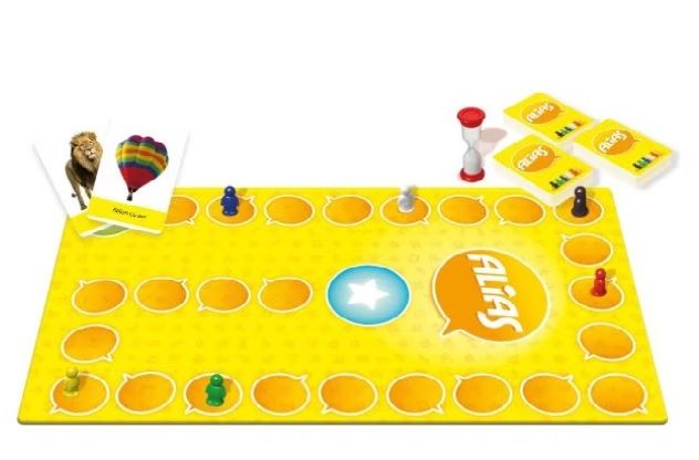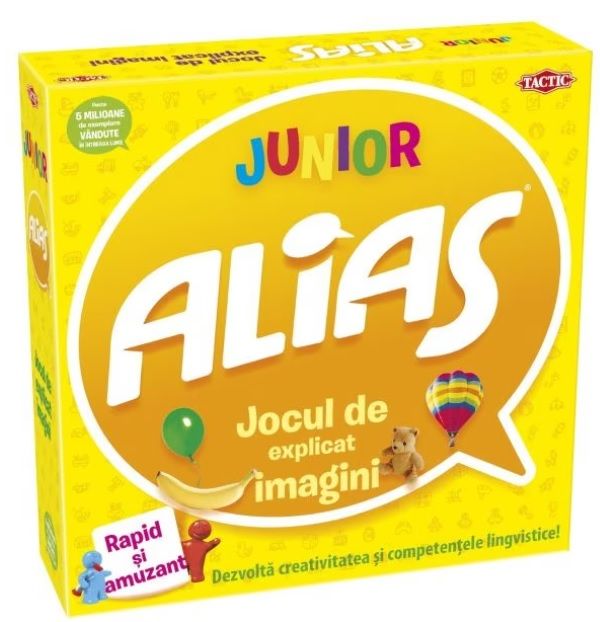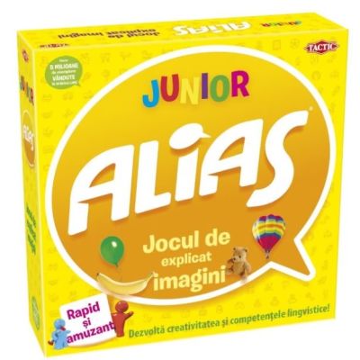 Alias Junior se poate juca in 2 sau mai multi jucatori. Scopul acestui joc este de a explica celorlalti jucatori din echipa ta cuvinte si pictograme dar fara a spune direct cuvantul scris pe cartonasele de joc. Se pot folosi sinonime antonime indicii sunete etc. Fiecare echipa trebuie sa ghiceasca cat mai multe cuvinte posibile inainte ca timpul din clepsidra sa se scurga. Echipa poate apoi sa inainteze pe tabla de joc cu un numar de pasi echivalent cu numarul de cuvinte ghicite. Prima echipa care ajunge la linia de sosire este declarata castigatoare. Pentru copii cu varste de peste 5 ani. Dimensiune ambalaj 25 x 6 x 25 cm.Specificatii