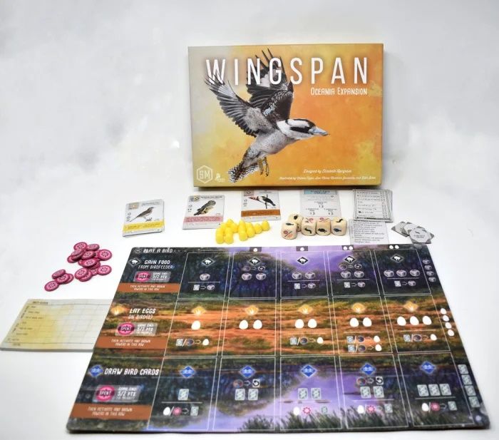 In aceasta a doua extensie a jocului Wingspan, va propunem pasarile pline de culoare care ne fascineaza din Oceania. Pasarile din aceasta extensie sunt destinate a fi amestecate cu cele din jocul de baza, cu sau fara alte extensii. Aceasta extensie include planse noi pentru jucatori si un tip nou de hrana, permitandu-le jucatorilor sa exploreze diferite strategii in acest mediu nou. Include de asemenea carti bonus noi si mai multe obiective de final de runda, precum si o culoare noua a oualor