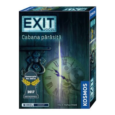 jucatori 1-4 minute 45-90 Limba Romana Un joc Escape Room pentru acasa Dupa ce vi se strica masina cautati un adapost pentru a petrece noaptea. Din fericire gasiti o cabana parasita in padure aproape de drum. Dar a doua zi constatati ca usa este incuiata Grilajele de fier ale geamurilor nu va lasa sa scapati. In schimb gasiti o brosura si un disc ciudat... Puteti rezolva ghicitorile lasate pentru voi de catre proprietarul tacanit al cabanei Nivel de dificultate AVANSAT O experienta de joc unica - de neuitat. Rezolvati toate ghicitorile cat de repede puteti Va descurcati sa evadati din laborator Continut 1 disc decodor 86 carti 3 obiecte ciudate 1 brosura 1 regulament ATENTIE Acest produs poate fi folosit doar o singura data deoarece marcati indoiti si rupeti materialele de joc.Specificatii