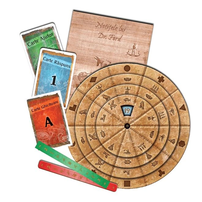 jucatori 1-4 minute 45-90 Limba Romana Un joc Escape Room pentru acasa Excursia in Valea Regilor este principala atractie turistica a vacantei din Egipt. Pe masura ce va deplasati prin coridoarele inguste ale unei piramide va pierdeti de grup. Intrati intr-o camera mortuara misterioasa. Usa de piatra se inchide in spatele vostru. Pe podea se afla o brosura prafuita si un disc antic... Puteti rezolva ghicitorile lasate de catre ultimul arheolog pentru a evada din piramida Nivel de dificultate EXPERT O experienta de joc unica - de neuitat. Rezolvati toate ghicitorile cat de repede puteti Reusiti sa scapati din mormantul faraonului Continut 1 disc decodor 83 carti 2 obiecte ciudate 1 brosuraSpecificatii