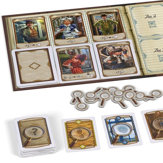 jucatori 2 minute 30 Limba Romana Un duel epic intre doua dintre cele mai stralucite minti din Londra Un atentat cu bomba a avut loc asupra cladirii Parlamentului britanic. Probele sunt insuficiente iar politistii de la Scotland Yard sunt in impas. O singura persoana poate rezolva cazul Sherlock Holmes. Dar pe ascuns profesorul Moriarty face si el demersuri in incercarea de a-si acoperi urmele. Astfel ia nastere un duel epic intre doua dintre cele mai stralucite minti din Londra. Doar cel care va descoperi cele mai multe indicii va izbuti. Va reusi Holmes sa rezolve cazul sau Moriarty va scapa basma curata inca o data Continut 52 carti cu indicii 10 carti cu personaje 24 jetoane de investigatie 1 plansa de joc 6 pioni de actiune 2 carti de rol 2 carti generice cu actiuni 2 carti Mycroft 1 RegulamentSpecificatii