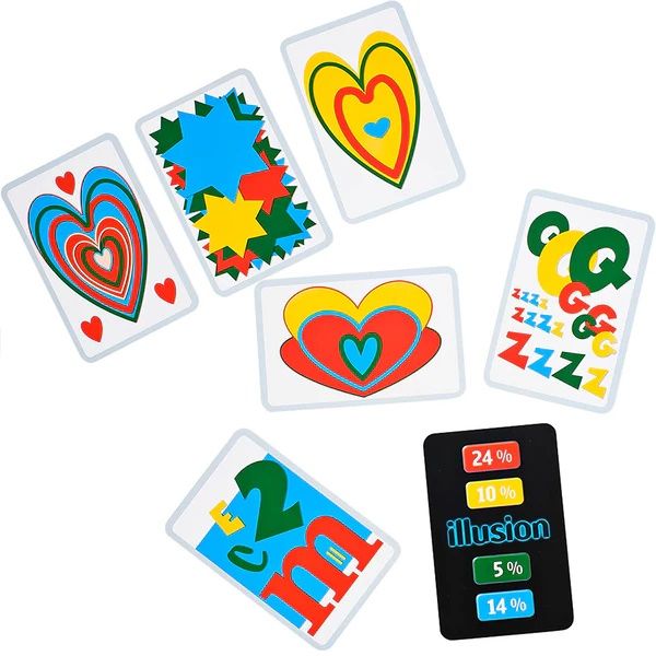 jucatori 2-5 minute 15 Limba Romana Cat de multa culoare puteti vedea cu adevarat Aproximati bine din vedere Cat de multa culoare puteti vedea cu adevarat Despre asta este vorba in jocul Illusion. Regulile sunt atat de simple incat jocul poate incepe imediat. Nu conteaza varsta sau inaltimea oricine poate juca Oare cine aproximeaza cel mai bine si nu va fi pacalit Continut 110 carti de joc 1 regulamentSpecificatii