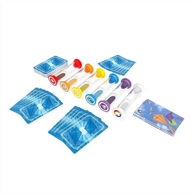 jucatori 2-6 minute 10 Limba Romana Distrati-va impreuna cu prietenii inaltand zmeie Cerul este senin simtiti in aer mirosul marii si cel mai important briza bate constant spre tarm. Reusiti sa ridicati zmeiele unul cate unul... dar cat timp le puteti mentine plutind In jocul Kites toata lumea coopereaza pentru a mentine toate zmeiele - reprezentate prin clepsidrele de nisip - in aer. Pe rand fiecare joaca 1 carte si intoarce clepsidrele corespunzatoare. Apoi trage o noua carte asta in timp ce toti va asigurati ca niciuna dintre clepsidre nu se termina. Coordonati-va si jucati toate cartile pentru a castiga... dar fiti mereu pregatiti pentru o eventuala furtuna Continut 6 clepsidre 53 carti zmeu 12 carti cu provocari 1 regulamentSpecificatii