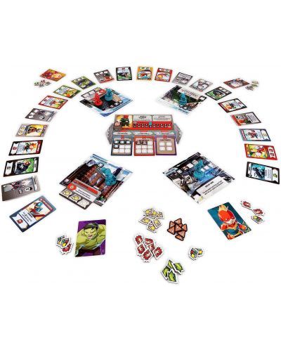 Marvel United este un joc de carti cooperativ in care preiei controlul Super Eroilor din universul Marvel si lupti cu cei mai populari antagonisti. In Marvel United jucatorii trebuie sa coopereze pentru a opri un super-antagonist. Ei se vor folosi de toate cartile cu puteri si abilitati si le vor combina cu ale celoralti jucatori pentru a putea un efect mai mare asupra fortelor rele. Jucatorii vor face mai multe misiuni in diferite locatii din oras vor elimina antagonisti rand pe rand iar la sfarsit orasul va fi salvat sau... va fi dominat de villaini Contine 7 miniaturi Super Eroi 3 miniaturi Villain 84 carti Super Eroi 3 dashboardgs Villain 36 carti Master Plan 18 carti Threat 8 locatii 1 ghid de Misiuni 3 carti cu Misiuni 3 carti Challenge 156 tokens 1 regulament.Specificatii