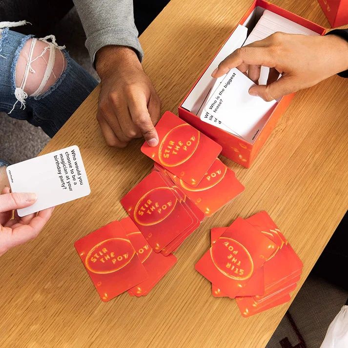 In sfarsit modalitatea perfecta de a le spune prietenilor tai cum te simti cu adevarat. Cu Stir the Pot vei putea decide care dintre prietenii tai este cel mai sensibil snob sau secretos - totul pentru distractie desigur. Acest joc este despre tachinarea buna asa ca pregateste-te sa prajesti - si sa fii prajit. Jucatorul care a terminat cel mai recent mancarea supei Jucatorul A va incepe prin a trage o carte si prin a-l citi in liniste. Apoi arata cartea persoanei din stanga lui ei Jucatorul B . Jucatorul B va citi cartea si va arata catre jucatorul din cerc caruia se potriveste cel mai mult descrierea. Jucatorul B intoarce apoi jetonul. Daca aterizeaza pe TELL cardul trebuie citit cu voce tare grupului. Daca aterizeaza pe NU SPUNETI este tinut secret. Jocul continua cerc in directia acelor de ceasornic. Jocul este de sine statator Numai adulti Acest joc contine detalii destinate adultilor si a fost creat pentru varste de peste 18 ani Jocul necesita cunostinte medii de limba engleza Contine 500 de carduri Stir The Pot 1 token Instructiuni Varsta recomandata 18 ani Nr. jucatori 3-20 jucatoriSpecificatii