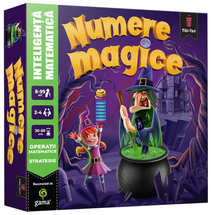 Tinerii ucenici de la Scoala de Vrajitorie au dezlantuit un vechi blestem si unul dintre ei a devenit posedat de o vrajitoare malefica. Intrati in pielea acestor personaje si aflati cine va castiga duelul magic. Numere Magice este un joc antrenant cu mult suspans si multe intorsaturi de situatie care ajuta la imbunatatirea abilitatilor matematice ale copiilor si ii face sa fie mai creativi in ceea ce priveste operatiile cu numere. 2-4 jucatori