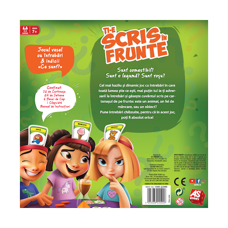 CE SUNT? SUNT COMESTIBIL? SUNT O LEGUMA? SUNT ROSU? Toata lumea stie ce esti in afara de tine! TI-E SCRIS IN FRUNTE - Cel mai amuzant si cel mai rapid joc cu intrabari! Ghici ce ai desenat in frunte. Un animal, un fel de mancare sau obiect!? Un lucru e sigur: poate fi absolut orice!