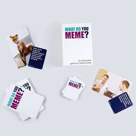 What Do You Meme - Jocul de baza este un party game care a involburat o intreaga generatie de adulti si a carui vant a maturat tot social media in general. Va trebui sa aflam cine va fi incoronat regele regina MEME-urilor prin competitie directa cu prietenii sau cu familia in cazul in care ai curajul tupeul sa potrivesti o carte de fotografie cu o carte de subtitrare creandu-ti propriile combinatii de Meme-uri revoltatoare dar extrem de comice. Este momentul ideal sa-ti aduni gasca echipa daca te-a convins jocul iar noi vom garanta momente unice si extrem de hilare alaturi de cei dragi tie In fiecare tura vom avea un judecator care joaca o carte de fotografie meme la care toti ceilalti jucatori vor reationa cu o carte de subtitrare pentru a completa meme-ul. Judecatorul selecteaza combinatia cea mai amuzanta iar acesta va fi incoronat regina regele Meme-urilor. Acesta este un joc perfect pentru nopti lungi de petrecere weekenduri fara sfarsit reuniuni cu gasca sau pentru sarbatori distractive. Numai adulti Acest joc contine detalii destinate adultilor si a fost creat pentru varste de peste 17 ani Jocul necesita cunostinte medii de limba engleza Contine 360 carti de subtitrare 75 de carti foto Meme Suport pentru afisarea cartilor Meme Instructiuni de joc in limba romana Imprimat pe carti de joc premium groase cu finisaj lucios ambalate intr-o cutie personalizata.Specificatii