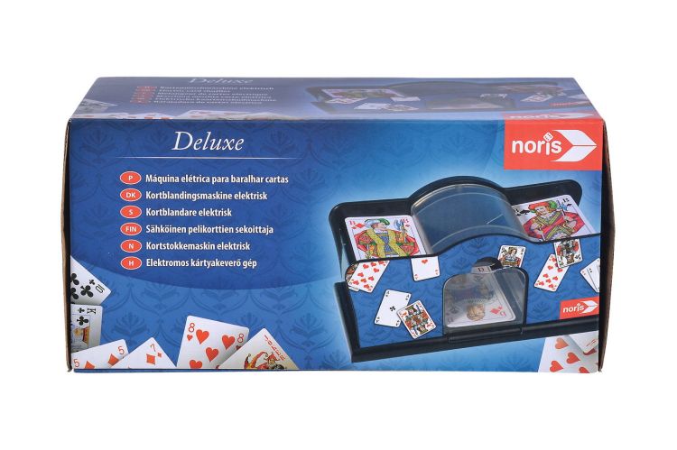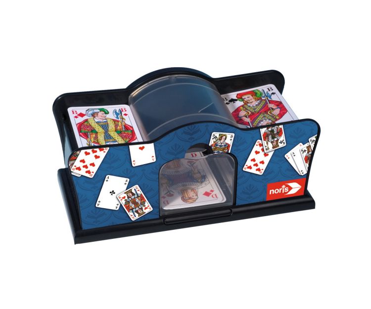 Cu aparatul de amestecat carti, cartile sunt perfect amestecate. Dispozitivul trebuie sa contina intotdeauna baterii noi pentru o putere optima de amestecare. Usor de utilizat: plasati cartile in dreapta si in stanga, apasati butonul si scoateti cartile amestecate din partea de jos a aparatului. Potrivit pentru toate cartile de joc standard (pana la o dimensiune a cartii de 9, 2 x 6 cm). Pentru a evita blocarea cardului, max. 120 de carti pot fi amestecate.