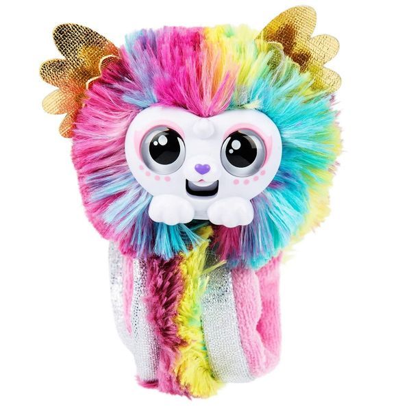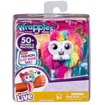 Wrapples este noul tau cel mai bun prieten blanos pe care il poti lua cu tine oriunde Loveste usor coada animalutului de incheietura iar bratara se va inchide in siguranta Esti gata de dans Invata dansul Wrapples si distreaza-te impreuna cu prietenii tai Culoarea ochilor se potriveste cu starea lor de spirit Chicotesc si torc atunci cand ii mangai si te joci cu ei Peste 50 de sunete si reactii 4 modele pentru colectionat 50 sunete si reactii Dispozitiv de prindere pentru fixare pe incheietura mainii Ochii se aprind pentru a se potrivi cu starea de spirit. Vorbeste si danseaza cu tine si alti Wrapples Adoarme cand e invartit cu susul in jos. 2 baterii AAA incluse .Specificatii