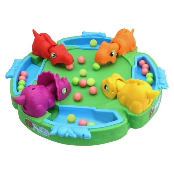 Dinozaurii flamanzi este jocul clasic de ciugulit bile Varsa toate bilutele colorate in mijlocul platformei cu dinozauri alege-ti un dinozaur si apasa repede pe manerul colorat ca sa iti lansezi dinozaurul spre bilute Ia-te la intrecere cu prietenii sau familia si ajuta-ti dinozaurul sa manance cele mai multe bilute ca sa castigi Pachetul contine 1 x tabla de joc 20 x bile colorate 1 x manual de utilizareSpecificatii