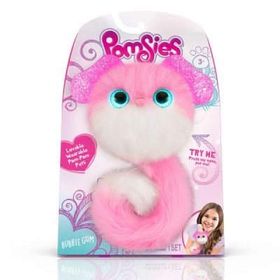 Plusurile interactive Pomsies reactioneaza cand le atingi si cand le mangai blanita. Acestea au pana la 50 de reactii diferite Puteti folosi Pomsies ca accesorii de fashion infasurandu-le cozile in jurul incheieturii mainii pe rucsac sau la incaltaminte Pisicutele Pomsies sunt animale de companie tip pom-pom pe care le puteti lua oriunde. Sunt inteligente dragalase si pufoase. Pomsies reactioneaza cand le atingi si le mangai blanita. Acestea au pana la 50 de reactii diferite Puteti chiar simti cand ele torc Fiecare animal de companie Pomsies include o perie pentru a le aranja blanita Boots reactioneaza atunci cand o luati in brate. Mangaiati-o intre urechiuse pe frunte sau sub nas Daca incepe sa mormaie inseamna ca lui Pomsie ii e foame Apasati-o pe botic pentru a o hrani. Daca ii e foame stranuta e trista sau super fericita pisicutei Pomsie ii lumineaza ochii in erse culori pentru a va anunta de ce anume au nevoie Include 2 baterii CR123A.Specificatii