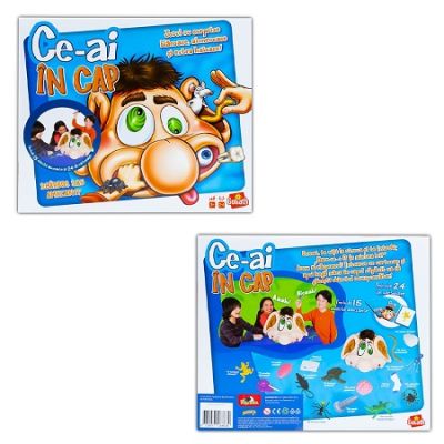 Uneori te uiti la cineva si te intrebi Oare ce-o fi in mintea lui Acum ai raspunsul. Intoarce un cartonas si apoi baga mana in capul zapacit ca sa gasesti obiectul corespunaztor Caracteristici - Kitul contine 1 cap zapacit 15 obiecte amuzante 1 masea stricata 1 rama alunecoasa 1 extraterestru amenintator 1 paianjen veninos 1 soseta purtata 1 crocodil inspaimantator 1 creier gelatinos 1 surub ascutit 1 furnica uriasa 1 broasca testoasa 1 branza puturoasa 1 sobolan murdar 1 limba umeda 1 acadea lipicioasa 1 broasca slinoasa 24 cartoase regulament de joc. - Numar de jucatori 2-4. - Gaseste in capul zapacit obiectul de pe cartonasul tras doar ghidandu-te dupa ce simti fara sa tragi cu ochiul. - Cele 15 obiecte incluse pot fi spalate cu apa calduta si sapun si apoi sunt lasate sa se usuce. Capul poate fi curatat ocazional cu o laveta curata umezita in apa cu sapun. Nu il scufundati in apa si nu folositi detergenti agresivi. Nu se introduce in masina de spalat. - Capul poate fi dezasamblat daca este nevoie dar poate ramane asamblat si utilizat ca decoratiune pentru camera. - Jucaria este realizata din material textil metal si plastic de calitate non-toxice. Dimensiune jucarie aproximativ 25x18x25cm Avertizare Acest produs poate contine piese mici din cauciuc. In cazul putin probabil al inghitirii unor astfel de piese consultati de urgenta un specialist. Produsul este nou si comercializat in ambalajul original al producatorului. Imaginile de pe site au caracter informativ. Ambalajul trebuie indepartat recuperat si aruncat de catre un adult inainte de a se da spre utilizare copilului. Nu lasati ambalajele produselor la indemana copiilor. Se recomanda utilizarea produsului sub supravegherea unui adult. Produsul poate contine piese mici care se pot inghiti sau inhala de cei mici existand pericolul de sufocare sau nu este potrivita copiilor mai mici de 3 ani. Contine coarda lunga. Pericol de strangulare. Pastrati instructiunile si etichetele pentru referinte viitoare. Pastrati produsul departe de foc si nu il lasati in preajma temperaturilor ridicate si a umiditatii. Nerecomandat copiilor cu varsta mai mica de 5 aniSpecificatii