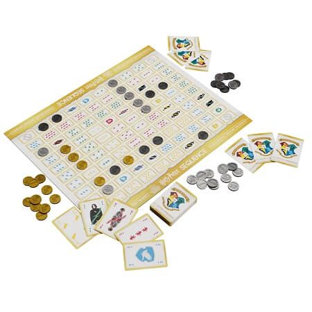 Clasicul joc distractiv un bestseller de peste 35 de ani acum cu o tema magica din universul lui Harry Potter. Joaca o carte si plaseaza un jeton pe campul corespunzator de pe tabla de joc. E atat de simplu Blocheaza-ti oponentii scoate-le jetoanele si atentie la valeti caci unii-s buni altii-s rai Aseaza 5 jetoane in linie ca sa obtii SECVENTA castigatoare Continut 1 tabla de joc 104 carti de joc 135 de jetoane 50 negre 50 aurii 35 argintii regulament in limba romana.