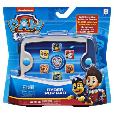 Ajuta-i pe cateii din Patrula Catelusilor sa salveze ziua cu Ryders Pup Pad Cu diferite sunete de catelus Ryder Pup Pad aduce la viata emotia din Patrula Catelusilor. La fel ca si in serial poti folosi Ryders Pup Pad pentru a contacta Patrula Catelusilor atunci cand apar probleme Apasa butonul pentru a auzi sunete unice exact ca in serial Apoi foloseste-ti imaginatia pentru a te juca din nou si din nou cu propriile tale misiuni de salvare interesante. Echipat cu pernita cateilor Pup Pad vei fi pregatit pentru salvare la fel ca Ryder Simte-te la fel ca si Ryder atunci cand conduci Patrula Catelusilor cu Ryders Pup PadSpecificatii