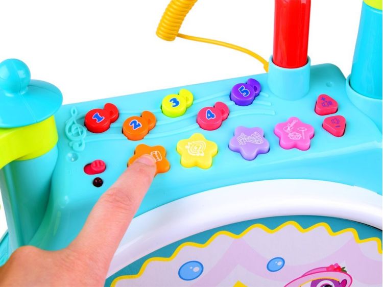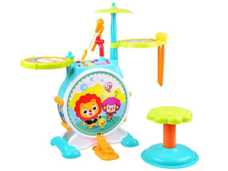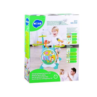 Setul de tobe Hola Banging Bopping pentru copii va va incuraja micuta stea rock sa gandeasca si sa actioneze creativ! Setul de baterii inteligente are doua tobe, un tambur de bas si un cinal. n plus, exista microfonul stand-up care le va purta vocea peste camera. Banging Bopping Drum poate fi comutat intre doua moduri (Melody si Drum), care ii permit copilului sa se joace impreuna cu melodiile sau sa se joace pe propriul canal. Butoanele de control al volumului va permit sa opriti muzica atunci cand aveti nevoie sau sa o intoarceti pentru a le asculta. Jucariile muzicale ofera copiilor o oportunitate de a-si perfectiona talentul pentru muzica in timp ce se joaca si experimenteaza cu sunetul. Caracteristicile produsului: - Tambur de baza de lucru, toiaguri moi, tambururi si scaune de jucarie, - Melodii si sunete preprogramate, - Butoane de iluminare, - Cinele: produc efecte sonore asemanatoare vietii, - Pedala de bas: pentru sunete de bas realiste, - Control volum mare / mic, - Microfon detasabil, - Asamblare rapida si usoara, Include: - Bass Drum, Cinele, 2 Snare Tobe, Microfon, 2 Sticks Drum & Scaun, - 5 butoane de ritm, - 4 butoane de selectare a modului de iluminare, - Sunete de tambur, - 10 Melodii, - 3 ritmuri