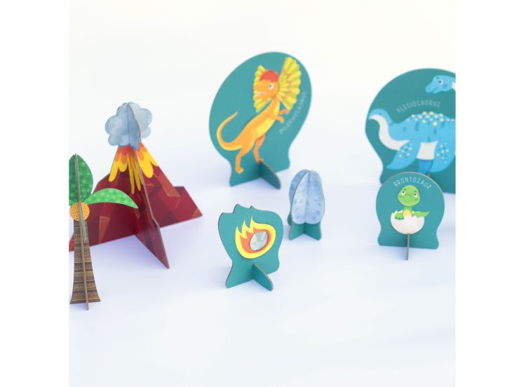 Aventura distractie si creativitate intr-un singur loc Acest joc puzzle creat pe baza unei imagini din lumea dinozaurilor este completat cu un joc 3D mai exact cu 8 figurine din carton pe care copiii le pot aranja dupa bunul lor plac. Apoi pe baza acestora copiii pot crea povesti si isi pot imagina intamplari fantastice si aventuri uimitoare din lumea dinozaurilor. Dimensiunea produsului 48 x 32 cmSpecificatii