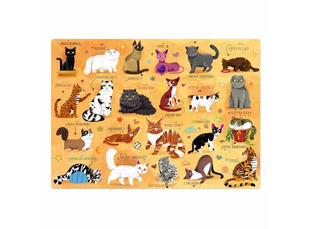 Lumea celor mai pufoase si mai adorabile animale de companie te invita sa o descoperi si sa o explorezi pas cu pas in timp ce rasfoiesti cartea cu cele mai populare rase de pisici asamblezi puzzle-ul sau te bucuri destickere.Specificatii