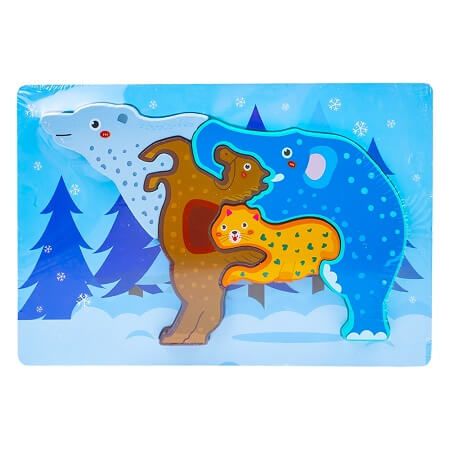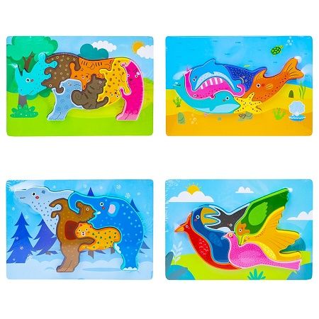 Puzzle-urile au un farmec aparte acest puzzle fiind o varianta din lemn potrivita pentru invatarea primelor notiuni despre jocul de puzzle un joc clasic ce dezvolta gandirea imaginatia si logica. Caracteristici - Puzzle-ul incastru din lemn 3D tip plansa are erse imagini cu animale salbatice animale marine sau pasari. - Numarul de piese din care se asambleaza puzzle-ul variaza in functie de model de la 4 piese la 8 piese. - Piesele sunt viu colorate vopseaua folosita fiind non toxica. - Jucaria stimuleaza abilitatile de potrivire recunoastere vizuala invatarea culorilor si a formelor fiind o jucarie educativa. Dezvolta atentia memoria concentrarea coordonarea ochi-mana si precizia. - Produsul este ambalat in folie. Avertizare Produsul este nou si comercializat in ambalajul original al producatorului. Imaginile de pe site au caracter informativ. Ambalajul trebuie indepartat recuperat si aruncat de catre un adult inainte de a se da spre utilizare copilului. Nu lasati ambalajele produselor la indemana copiilor. Se recomanda utilizarea produsului sub supravegherea unui adult. Produsul poate contine piese mici care se pot inghiti sau inhala de cei mici existand pericolul de sufocare sau nu este potrivita copiilor mai mici de 3 ani. Pastrati instructiunile si etichetele pentru referinte viitoare. Pastrati produsul departe de foc si nu il lasati in preajma temperaturilor ridicate si a umiditatii. Datorita masurarii manuale a produsului poate exista o diferenta minora fata de dimensiunea reala a produsului.Specificatii