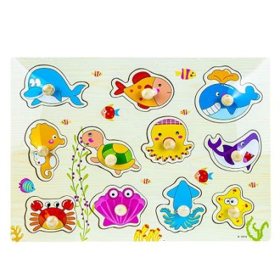Puzzle din lemn incastru cu pioneze pentru a usura asezarea lor in locul in forma dedicata incurajeaza coordonarea ochi-mana atentia capacitatea cognitiva si recunoasterea formelor. Caracteristici - puzzle din lemn incastru cu mici pioneze pentru a usura asezarea pieselor in forma dedicata acestora - formele sunt in forma de animale marine amuzante viu colorate - incurajeaza coordonarea ochi-mana atentia capacitatea cognitiva si recunoasterea formelor Avertizare Produsul este nou si comercializat in ambalajul original al producatorului. Imaginile de pe acest site au caracter informativ. Ambalajul trebuie indepartat recuperat si aruncat de catre un adult inainte de a se da spre utilizare copilului. Nu lasati ambalajele produselor la indemana copiilor. Se recomanda utilizarea produsului sub supravegherea unui adult. Produsul poate contine piese mici care se pot inghiti sau inhala de cei mici existand pericolul de sufocare sau nu este potrivita copiilor mai mici de 3 ani. Pastrati instructiunile si etichetele pentru referinte viitoare. Pastrati produsul departe de foc si nu il lasati in preajma temperaturilor ridicate si a umiditatii. Nerecomandat copiilor cu varsta mai mica de 3 aniSpecificatii