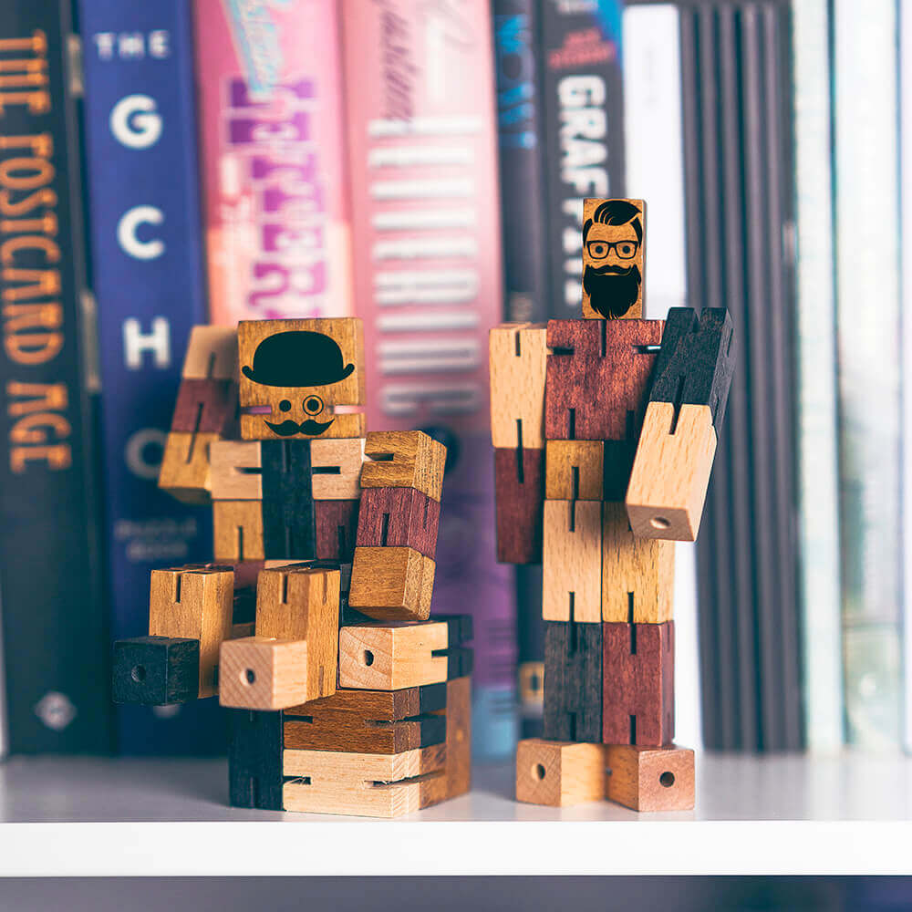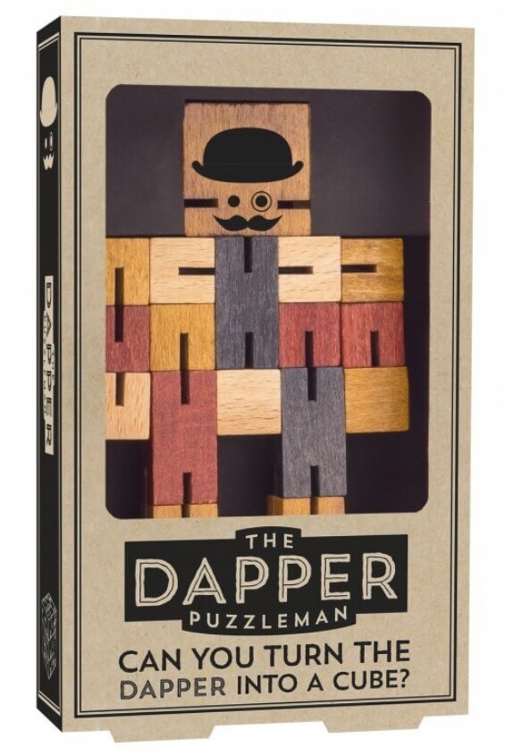 Rezolvarea problemelor oricare ar fi natura lor presupune logica concentrare comunicare perseverenta si rabdare. Aceste abilitati importante in viata nastra ca adulti dar si in cea a copiilor pot fi antrenate pe termen lung prin experianta acumulata sau prin exercitii cu jocuri tip puzzle. Puzzle-ul este cel mai educativ joc pe care l-ar putea avea un copil un cadou inspirat de fiecare data indiferent de varsta Seria Gentleman Puzzle Atat Hipsterul cool si cat si elegantul Dapper pot fi cadourile perfecte pentru oricare dintre colegii de la birou sau pentru prietenii tai. Puzzle-ul este format dintr-o insiruire de cuburi din lemn pe o sfoara elastica. In forma initiala reprezinta un om Dapper respectiv Hipster iar provocarea consta in trasformarea Dapperului Hipsterului intr-un cub si apoi din nou inapoi in forma initiala. The DAPPER 1. Provoaca-ti prietenii sa gaseasca metoda de a transforma Dapperul intr-un cub Grad dificultate foarte dificil 2. Transforma cubul in Dapper Grad dificultate usor Testeaza-ti capacitatea de a rezolva probleme rabdarea Dezvolta-ti imaginatia si indemanarea.Specificatii