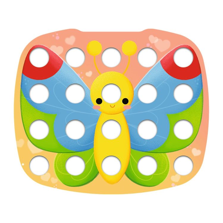 Cu Baby Color Sorter copiii invata sa recunoasca cele mai importante culori si sa le potriveasca intr-un mod distractiv. Sase sabloane fata-verso cu imagini adecvate varstei ii invita pe micii jucatori sa le acopere cu butoane colorate. Butoanele sunt foarte mari iar copiii ii pot atasa cu usurinta de placa cu orificii. Jocul contribuie la dezvoltarea abilitatilor motorii fine si a perceptiei. Jocul se joaca astfel 1. Alegeti o imagine. 2. Asezati imaginea pe placa cu gaurile. 3. Asezati butoanele conform culorilor din imagine. Continutul pachetului 24 de ace colorate galben rosu albastru verde 1 suport confortabil la indemana cu gauri si maner 12 imagini colorate imprimate pe ambele fete . Un cadou perfect pentru copiii peste 1 an. Fabricat din materiale naturale sigure de inalta calitate certificate FSC.Specificatii