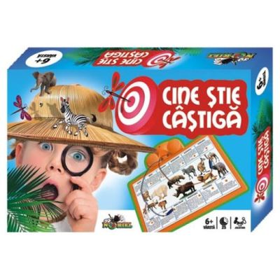 Cine stie castiga a fost special conceput pentru testarea si imbogatirea cunostiintelor de cultura generala precum si dezvoltarea atentiei distributive a copiilor. Cine stie castiga este un joc educativ didactic si distractiv pentru copiii cu varsta intre 6 si 11 ani. Jocul contine 12 planse cu erse teme geografie zoologie botanica etc. 144 de intrebari test precum si raspunsurile acestora1 aparat electronic pentru validarea rezultatelor Reguli de joc Se vor aseza plansele pe rand in aparat si cu ajutorul celor doua creioane speciale atasate la acesta pentru marcarea intrebarilor si a raspunsurilor se vor determina corespondentele. In cazul unui raspuns corect aparatul va semnaliza sonor si luminos iar in cazul unui raspuns gresit aparatul nu va semnaliza.Specificatii