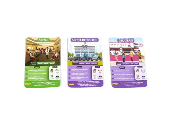Este Jocul rapid al intrebarilor inteligente. Ghiceste in 10 provocari din Lumea Oraselor pentru copiii de 5 ani si peste punandu-le intrebari care sa ii ajute sa ghiceasca orasele indicate pe cartea de joc. Fiecare carte contine indicii si aluzii care ar putea sa-i invete pe copii si pe tine ceva nou Copiilor le va placea sa isi adune prietenii si sa ii provoace sa identifice locurile de prin oras pe baza unor indicii din doar doua cuvinte. Pentru a castiga jocul va fi nevoie sa se puna intrebari inteligente. Contribuie la promovarea abilitatilor sociale si de comunicare la rezolvarea problemelor la luarea deciziilor si la gandirea creativa. Recomandat pentru 2-6 jucatori cu varsta de la 5 ani si peste.Specificatii