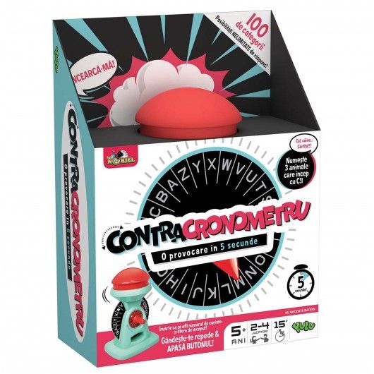 Gandeste rapid Trebuie sa gasesti cuvintele potrivite Contracronometru Trage un cartonas invarte roata si apasa butonul corect Ai doar 5 secunde sa raspunzi corect Primul jucator care aduna 10 cartonase castiga Continut - Buton cu cronometru - Maner de invartit - Disc cu litere - 50 de cartonase cu 100 de categorii - 2 x Stickere cu cifre - RegulamentSpecificatii