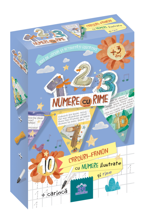 Idei de jocuri si activitati educative carduri fanion cu numere illustrate si rime Pachetul contine 10 carduri fanion cu numere de la 1 la 10 Snur pentru ghirlanda 2 5 m Carioca Brosura Caracteristici Marimi - 10 jetoane fanion fata-verso 10. 5 x 12 cm finit o brosura a cate 6 jetoane fata verso stil armonica 63 x 12 cm finit cutie fata 11. 75 x 17. 5 cm grosime 3 cm. Autor Lavinia TrifanSpecificatii