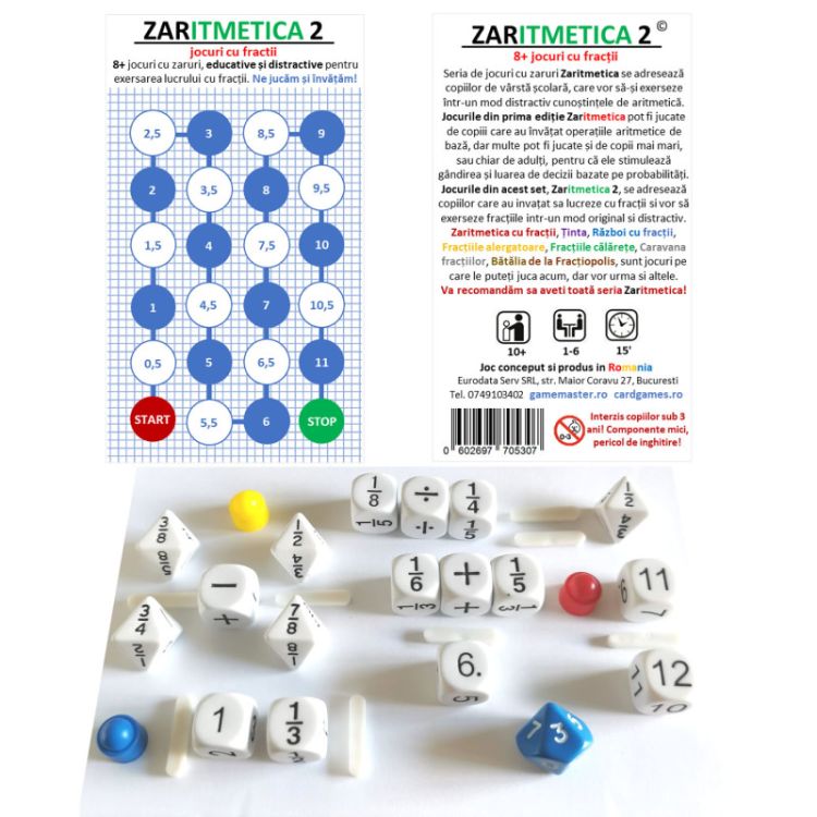 Seria de jocuri cu zaruri Zaritmetica © se adreseaza copiilor de varsta scolara, din ciclul primar, care vor sa-si exerseze intr-un mod distractiv logica si cunostintele de aritmetica.