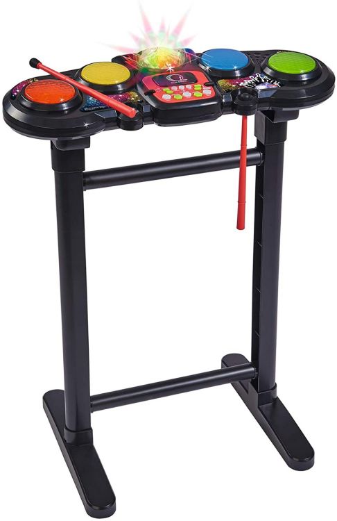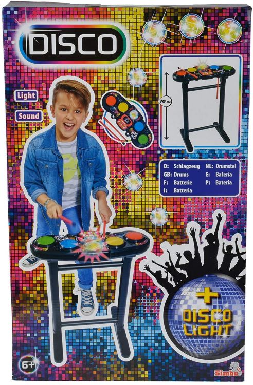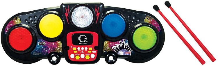 Creati ritmuri cool pe tobele My Music World Disco. Toba are o inaltime de 70 cm si este potrivita copiilor cu varsta de peste 6 ani. Cu cele doua bete incluse, puteti incepe muzica. Setul este echipat cu patru tobe, sase ritmuri, sunete de tobe, sunete suplimentare, o oprire automata si un control de volum si tempo. Mingea disco asigura efectele de iluminare adecvate si reglajul disco. Datorita functiei de inregistrare, propriile compozitii pot fi inregistrate direct si redate din nou si din nou.