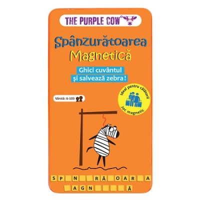 Spanzuratoarea Magnetica este un joc cu cutie metalica cu piese magnetice ideal pentru calatorii ncape in locuri mici . Un joc distractiv rapid si cu reguli simple si clare . Unul dintre jucatori trebuie sa fie calaul iar ceilalti sunt ghicitori de cuvinte. Calaul va forma un cuvant sau o fraza pe care ceilalti vor incerca sa o ghiceasca inainte ca Spanzuratoare sa fie completa. Este un joc care a format generatii intregi de tineri de-a lungul anilor acum intr-un set magnetic. Jocul contine 126 magneti Litere 11 magneti Zebra si o tabla de joc Varsta recomandata 6 ani Numar de jucatori 2 sau mai multi. Regulament in limba romanaSpecificatii
