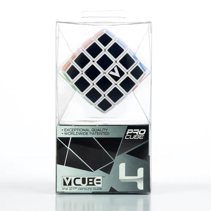V-CUBE 4 bombat este versiunea 4x4x4 al familiei V-CUBE si este disponibil in doua variante forma clasica si noua versiune bombata. Ambele au acelasi mecanism revolutionar V-CUBE V-CUBE 4 este un cub multicolor cu patru straturi cu o calitate exceptionala si o rotatie incredibil de lina. Jucatorul trebuie sa descopere o strategie pentru a obtine parti colorate uniforme. V-CUBE 4 are aproape 4. 32 1045 de permutari posibile si cantareste doar 157g Este format din 98 de piese mai mici si crucea solida care le sustine permitandu-le sa se roteasca independent pe axele bazate. Dificultate 2. 5 5