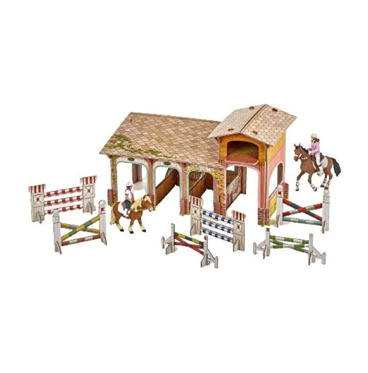 Un decor formidabil pentru a-ti crea la tine acasa o mica diorama cu cai, poti adauga insa si alte figurine din gama Papo. O jucarie viu colorata si confectionata din carton de cea mai buna calitate, ce permine multipla asamblare.