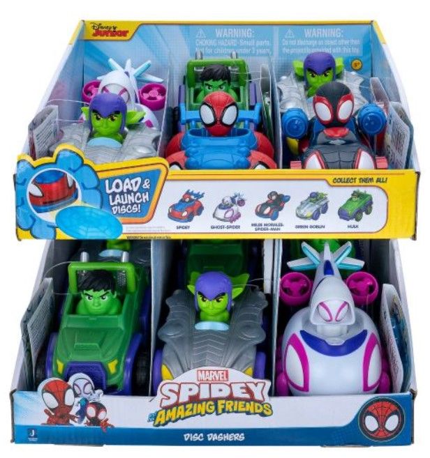 Aventura continua cu Spidey si prietenii sai Invinge inamicii cu acest vehicul cu lansator de discuri Spidey amp His Amazing Friends. 5 modele de colectionat cu vehicule si personaje diferite. Varsta recomandata 3Specificatii